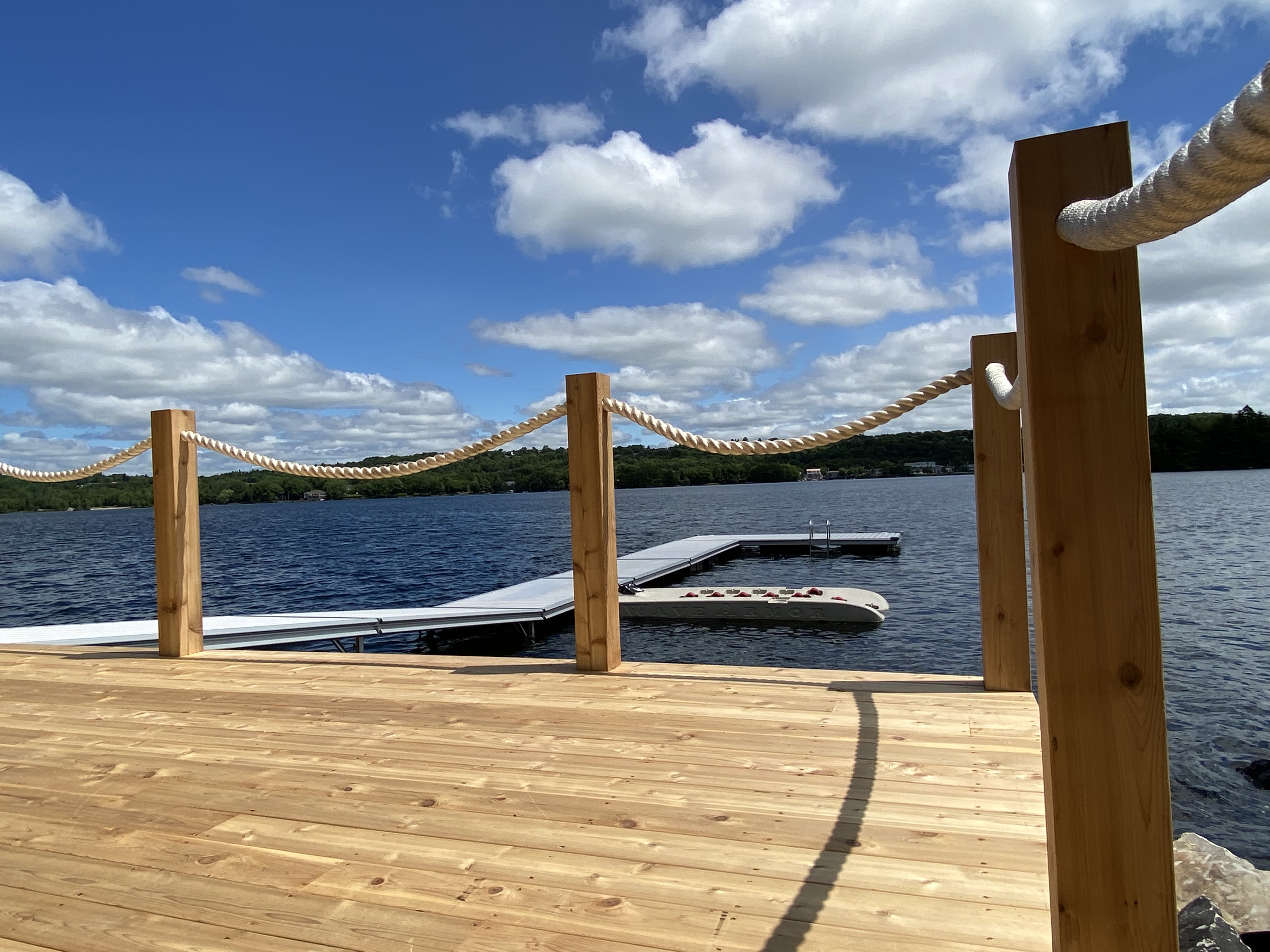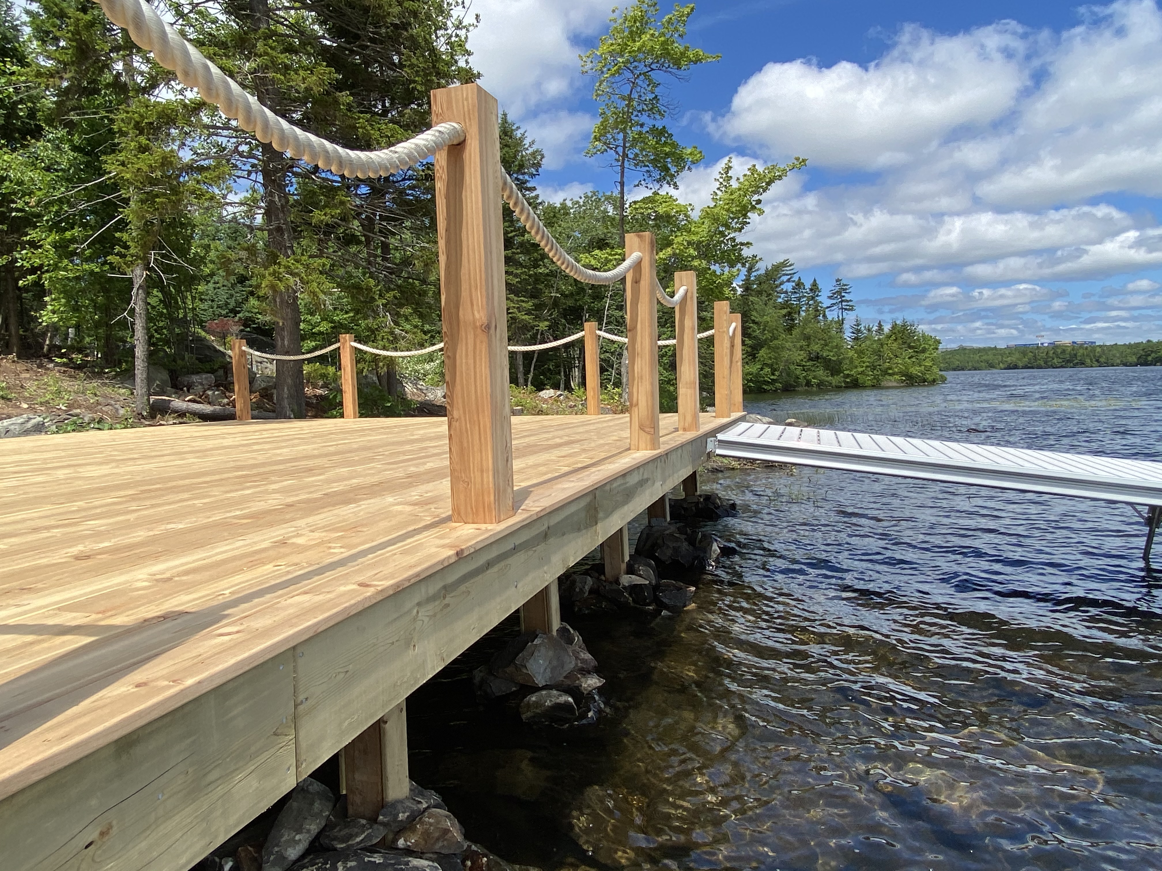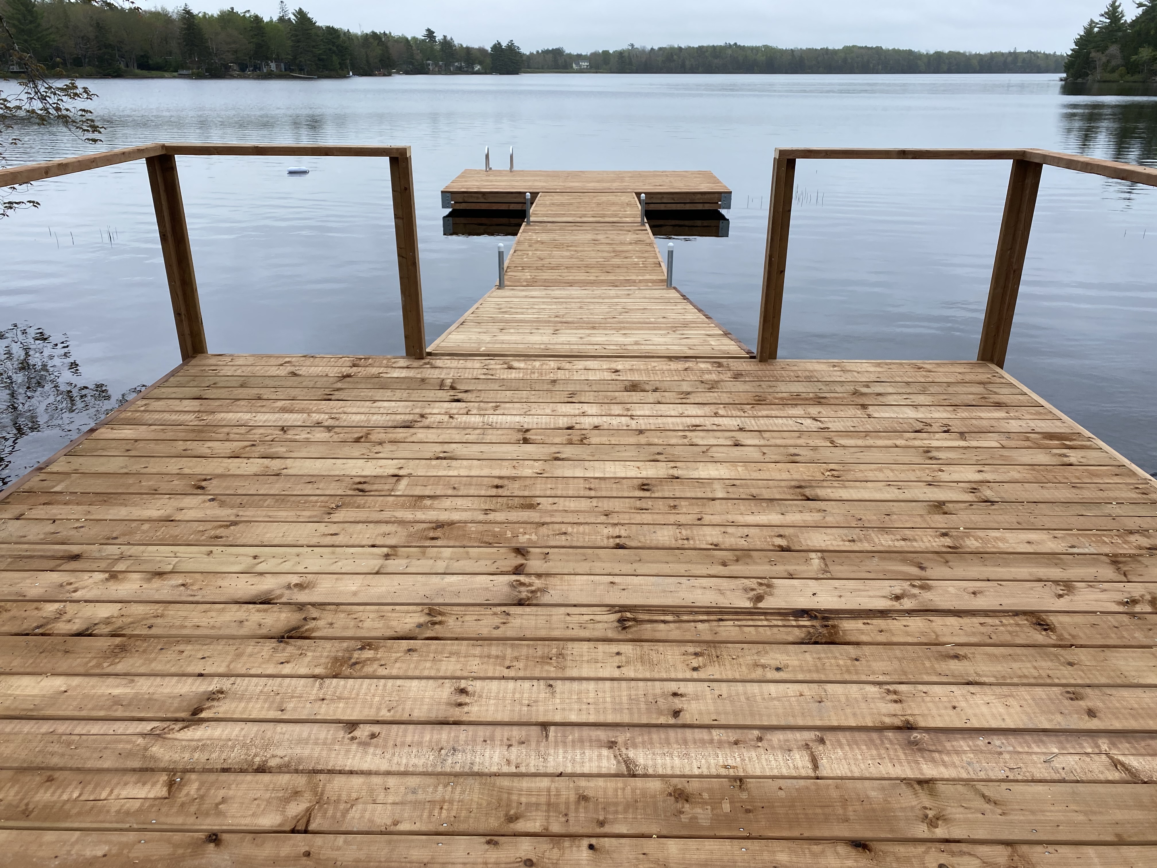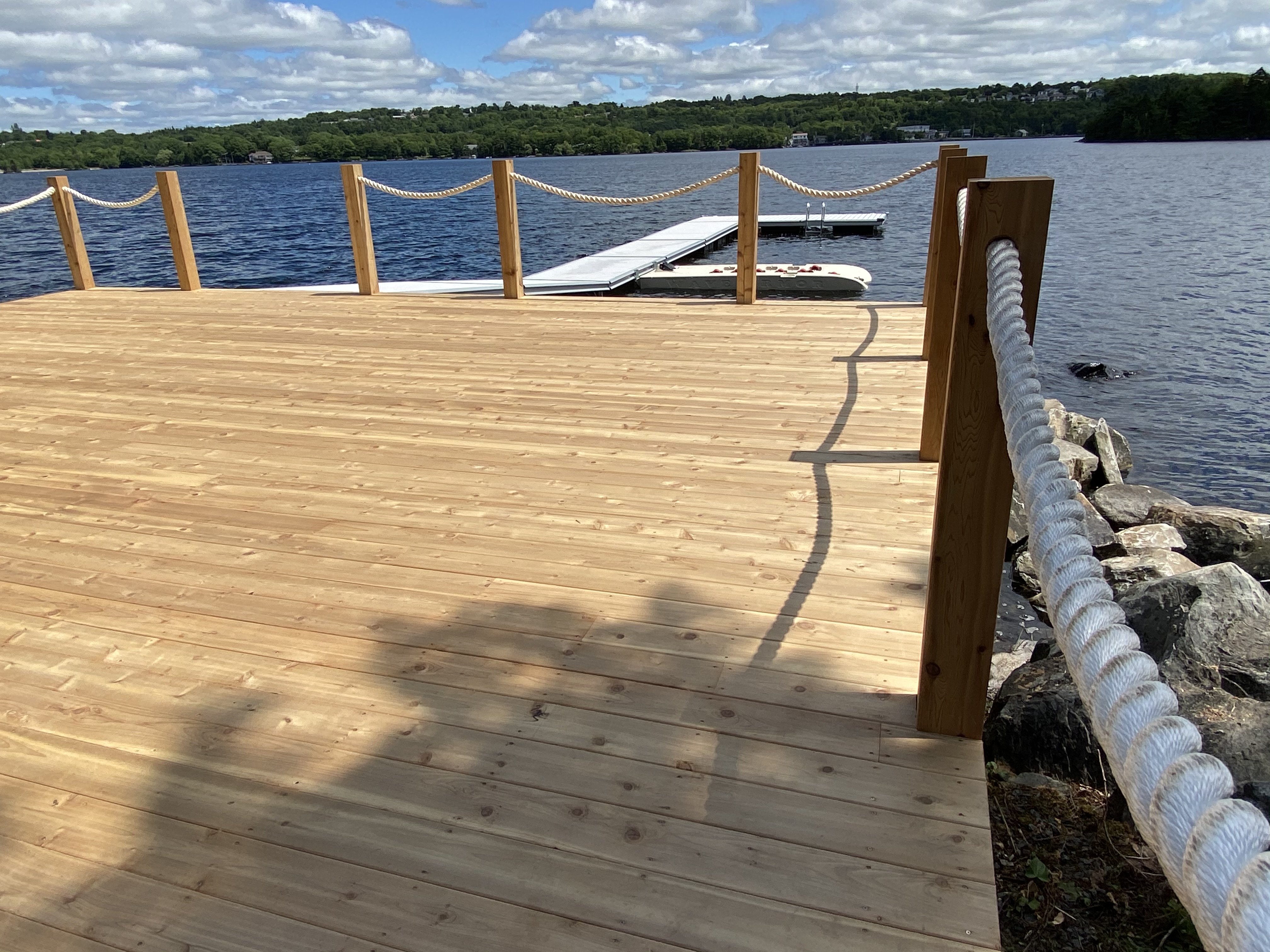 Enhance your shoreline with a waterfront deck. Docks Unlimited can help with your project. Composite or wooden choices available.