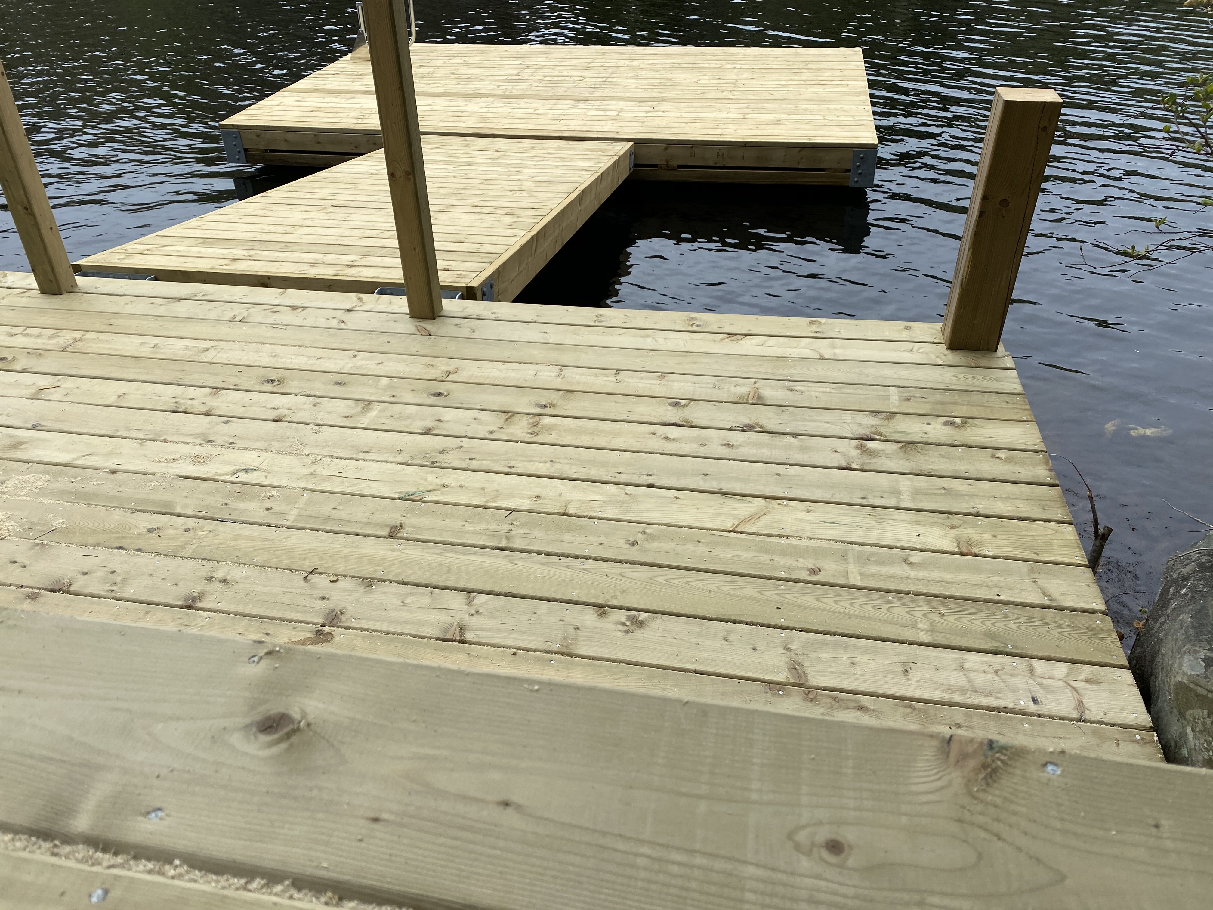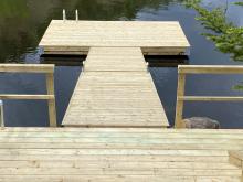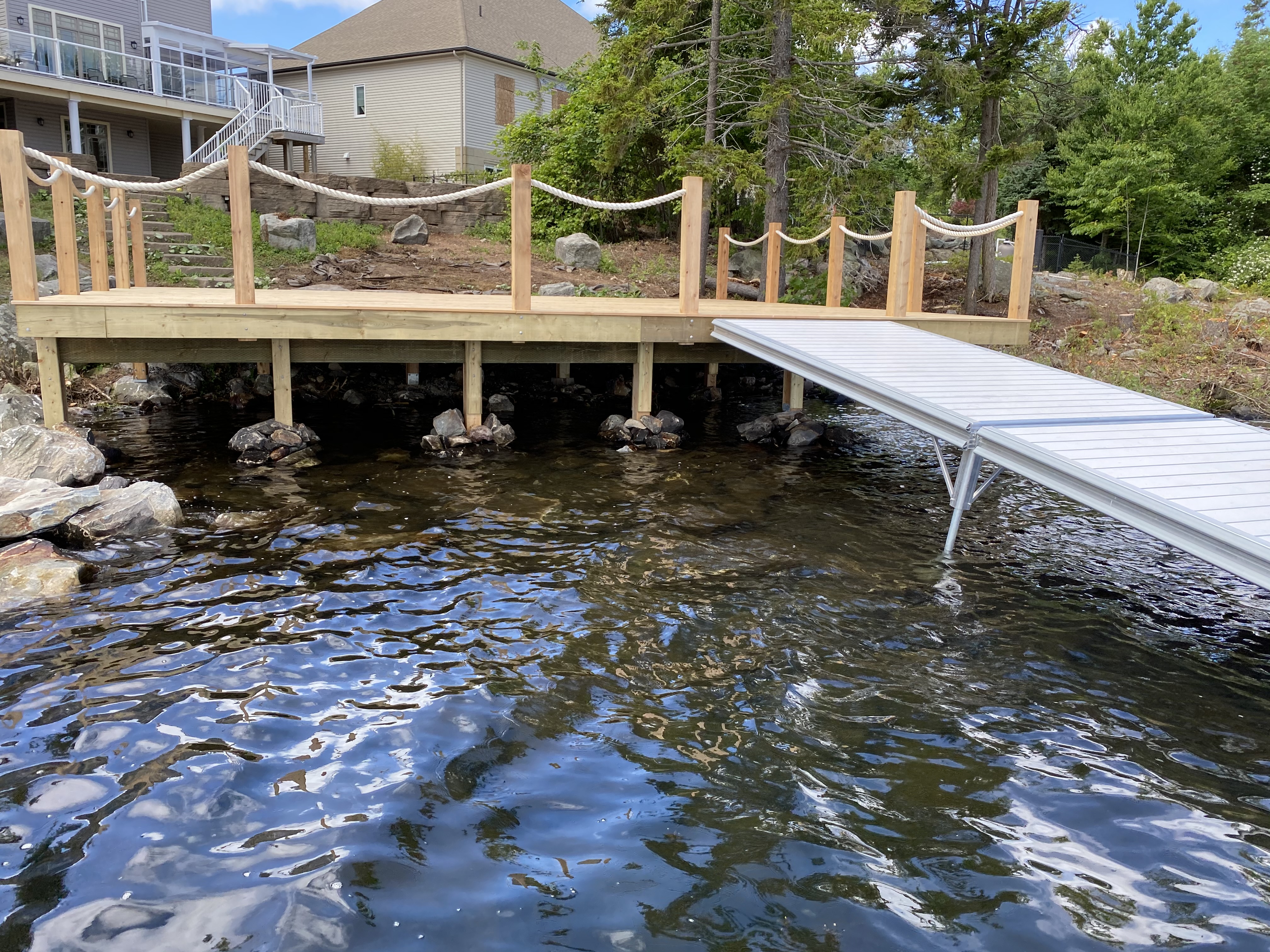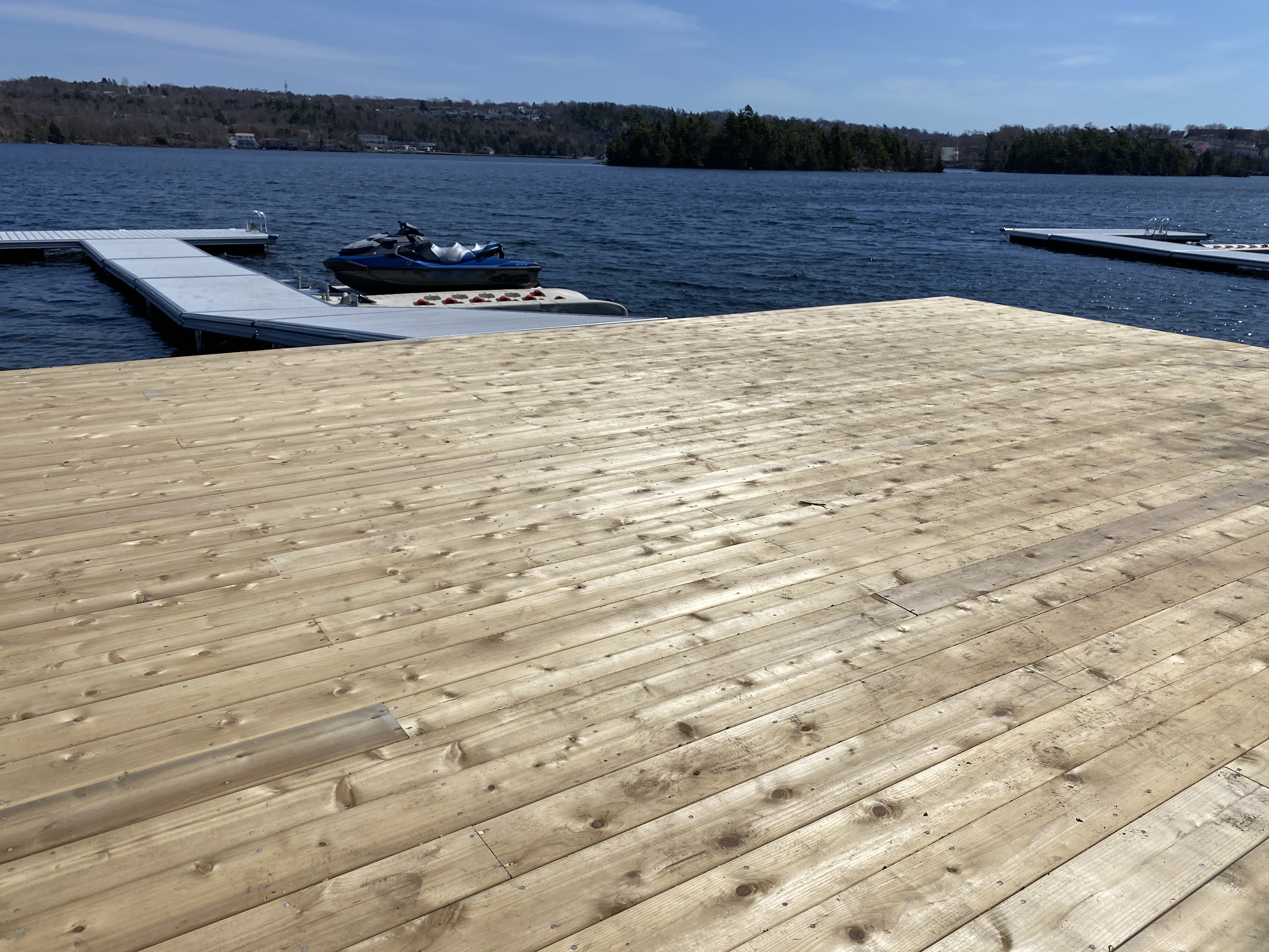Enhance your shoreline with a waterfront deck. Docks Unlimited can help with your project. Composite or wooden choices available.